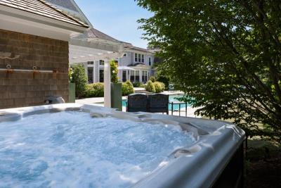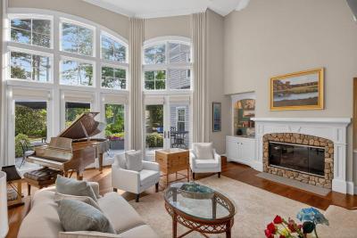 Live like you're on vacation at this spectacular Bay Club estate, where timeless design meets resort-style living. Privately situated on 1.58 acres with views of the 15th & 16th fairways, this custom home features a soaring great room with cathedral ceilings, fireplace and wet bar; a chef’s kitchen with Sub-Zero, Wolf and custom cabinetry; a richly appointed study, screened porch; and a serene first-floor primary suite with marble bath. Upstairs offers four en-suite bedrooms and a bonus game and theater room with a wet bar. The finished lower level includes a home office, wine cellar, playroom, executive closet suite, gym and sauna, offering extraordinary space for relaxation, recreation and entertaining. Outdoor highlights include a heated gunite pool, jacuzzi, pool house, and a custom-designed playhouse. A detached 3-car garage includes a 1088 SF carriage house complete with bedroom, kitchen, bath, laundry, private porch, and upscale finishes. Near the village, restaurants, beaches.
